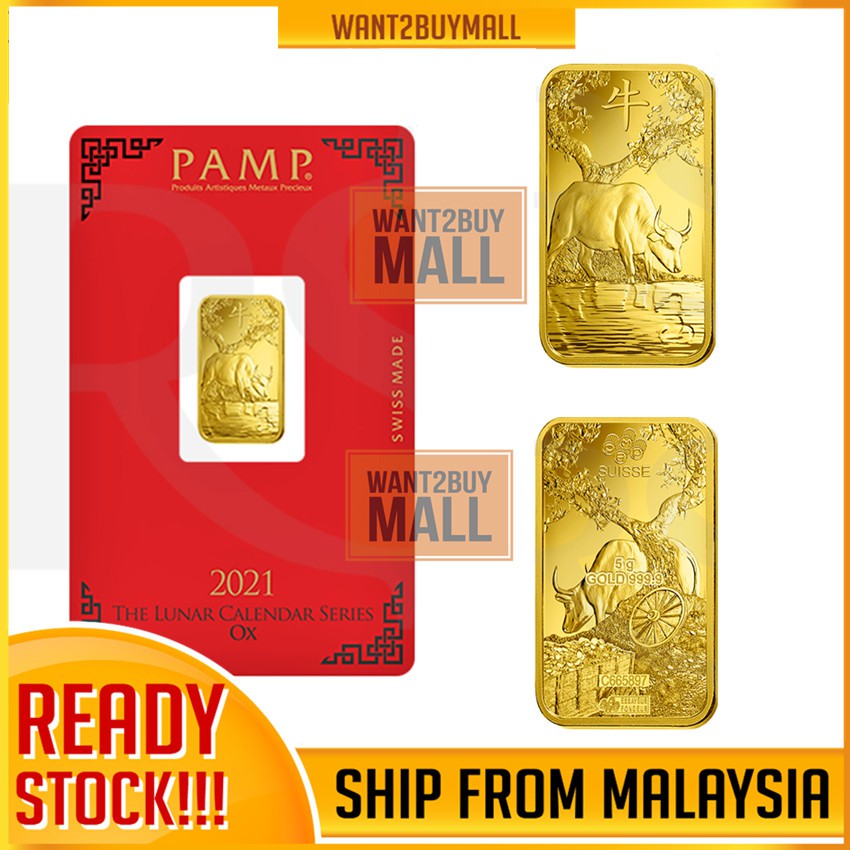 Hot Selling 2021 Pamp Suisse Lunar Ox 5 Gram Emas Gold Bar 9999 Fine Gold Bar Bullion Bar Sealed Assay Card
